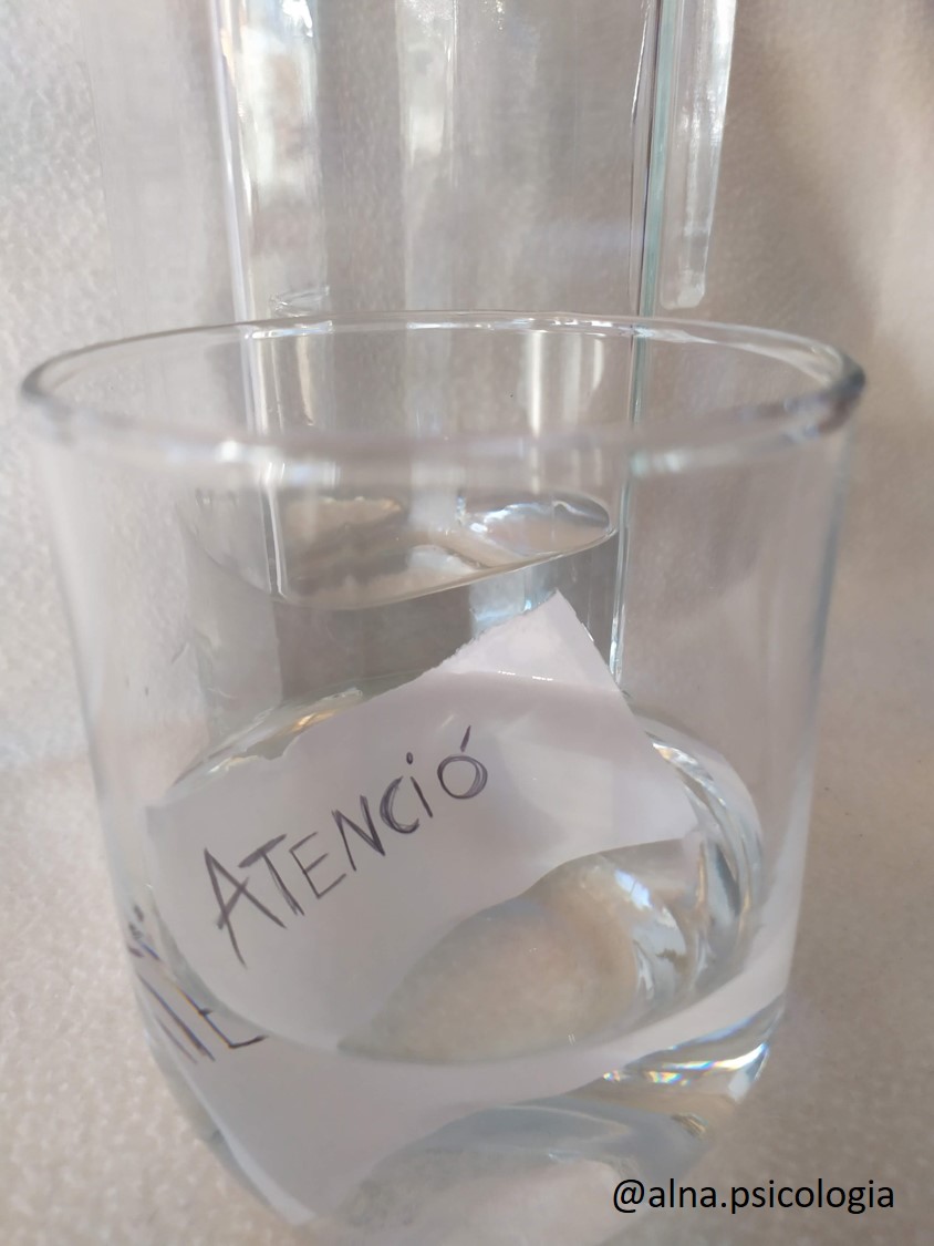 Imagineu que cada dia tots ens llevem amb una garrafa plena d’atenció. Al llarg del dia anem gastant l’aigua d’aquesta garrafa. Quan una cosa ens agrada i és cridanera hem de gastar poca d’aquesta aigua, però quan una tasca és més tediosa n’hem de gastar molta, a vegades tota la que tenim.